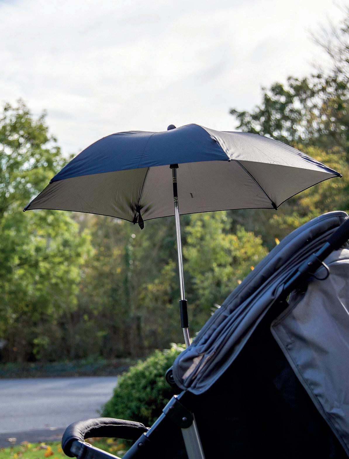 A lightweight parasol with a universal clamp that will t most pushchairs and strollers.