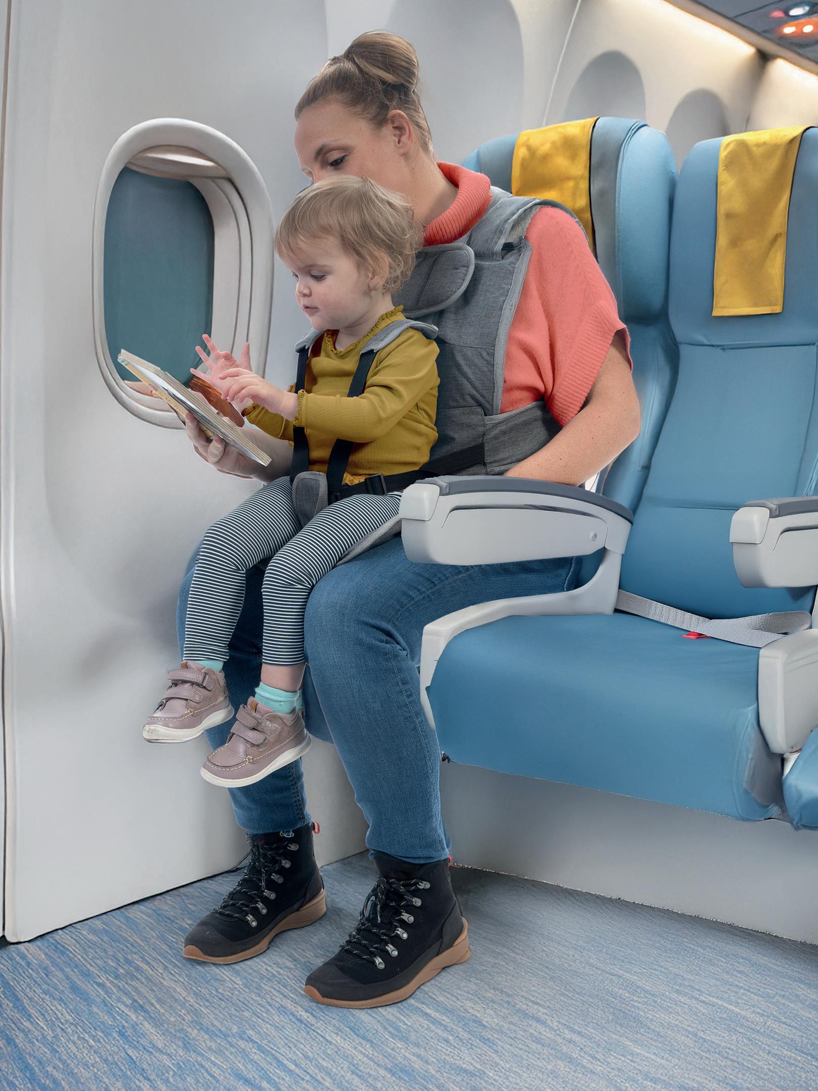 ight, solving the issue that infant tickets don’t include their own seat, so babies and toddlers must be held on a parent’s lap for the duration of the ight.