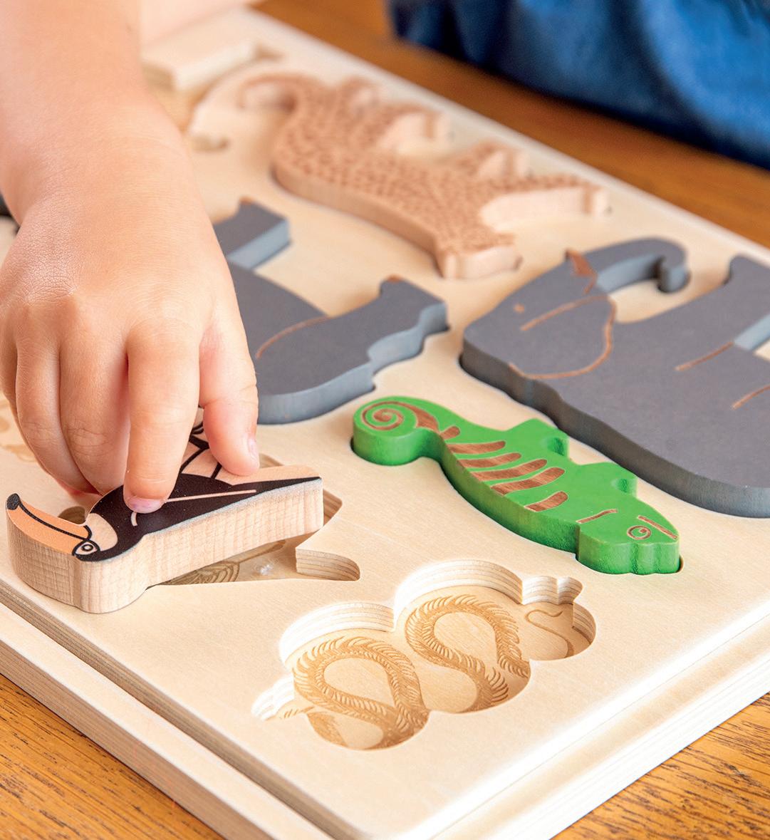 • Safari Animal Layer Puzzle: Gold, Best Sustainable Toy Praised for eco conscious manufacturing and durable FSC certi ed materials.