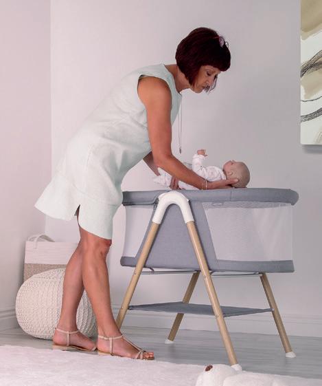 Lightweight and super-compact, it packs into a handy backpack for e ortless travel. Add the optional newborn crib accessory for a snug, raised bassinet in the early months. Available now from Out’n’About from £195.