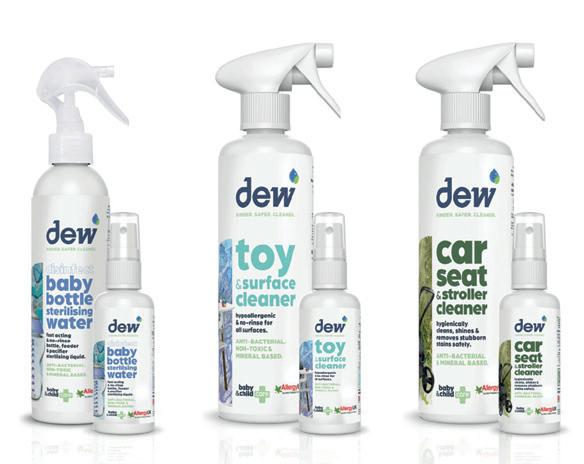 Produced and made in the UK, the new Dew Baby Care range gives parents peace of mind with formulations certi ed by Allergy UK. At its heart is the Dew Disinfectant Baby Bottle Sterilising Water, a 100% natural, alcohol-free, safer alternative to traditional sterilising liquids or tablets.