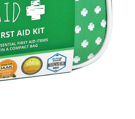 Thoughtfully designed for everyday life, the compact kit is packed with high-quality items including plasters, wipes, dressings, gloves and paramedic-recommended shears – plus a clear, practical rst aid guide and access to expert video tutorials. Its versatility makes it ideal for change bags, cars and busy homes, giving parents con dence to manage life’s little emergencies.