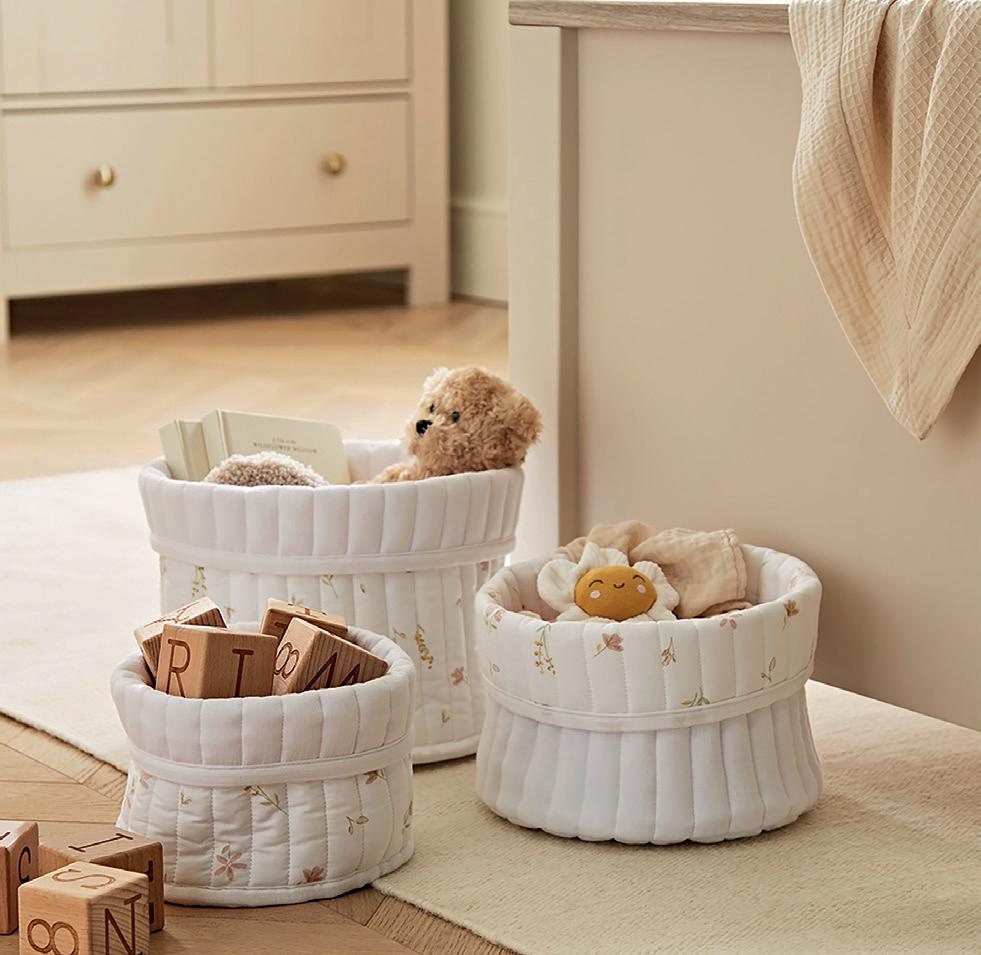 Completing the trio, the Cashmere Meadow range brings calming floral prints in soft neutrals, designed to layer effortlessly with their waffle textures. Each range includes cot bed quilts, sheets, comforter blankets, bedding sets, changing mats, nappy caddies, storage and more. sales@cuddleco.co.uk Time to
