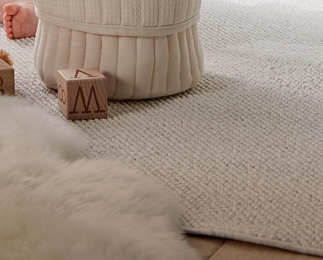Wa e range features 100% cotton in a classic wa e weave, with a warm cashmere, o ering a soft, textured layer that styles beautifully with any nursery palette.