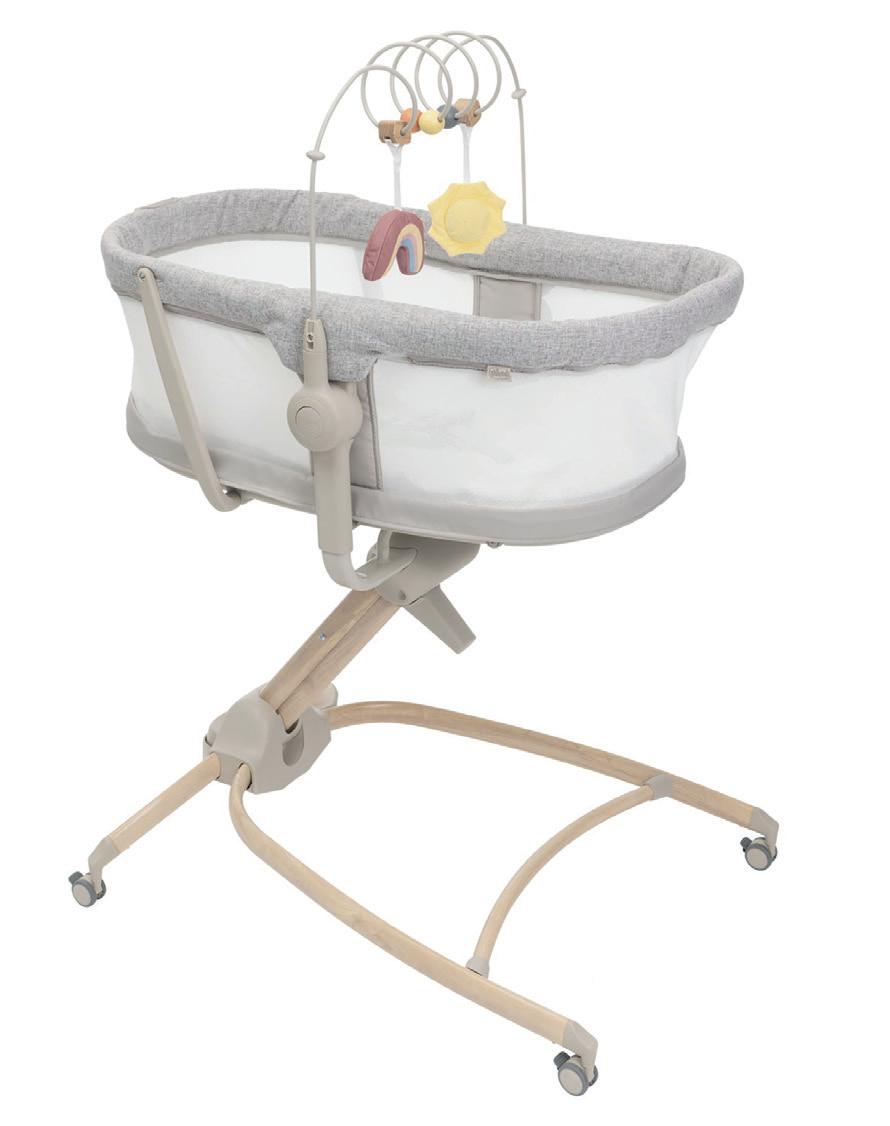 Practicality is enhanced through multiple recline positions, four height settings, a rotating seat, and discreet mobility wheels - ensuring the egg Highchair o ers retailers a standout addition to their portfolio. www.babystyle.co.uk
