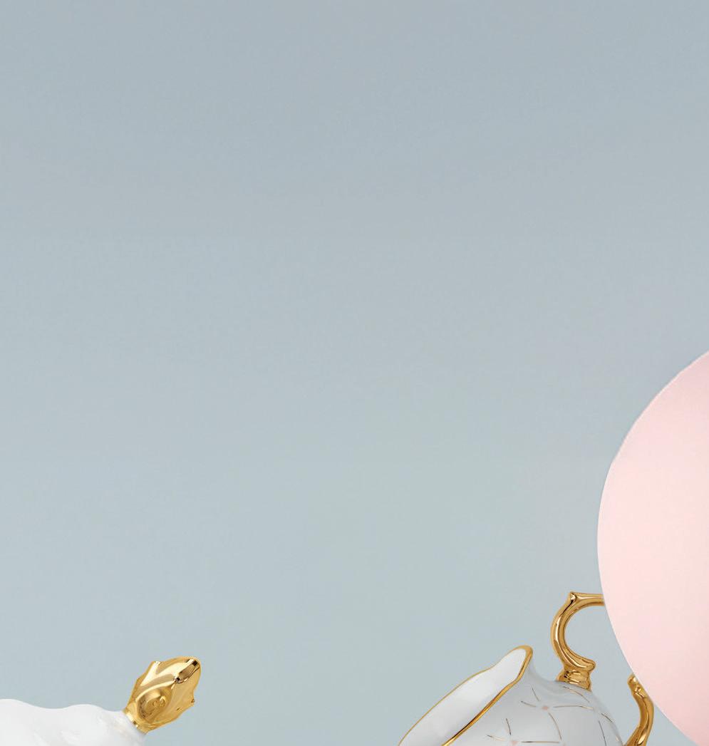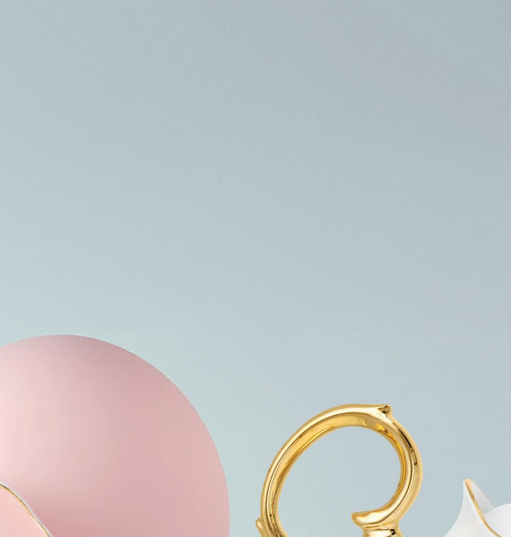 Gala in classic pink and blue or neutral white and gold, featuring Versace’s iconic Medusa head and intricate Baroque flourishes. The Barocco Gold children’s cutlery set, featuring a knife, fork, and both a large and small spoon, complements the services. www.rosenthal.de