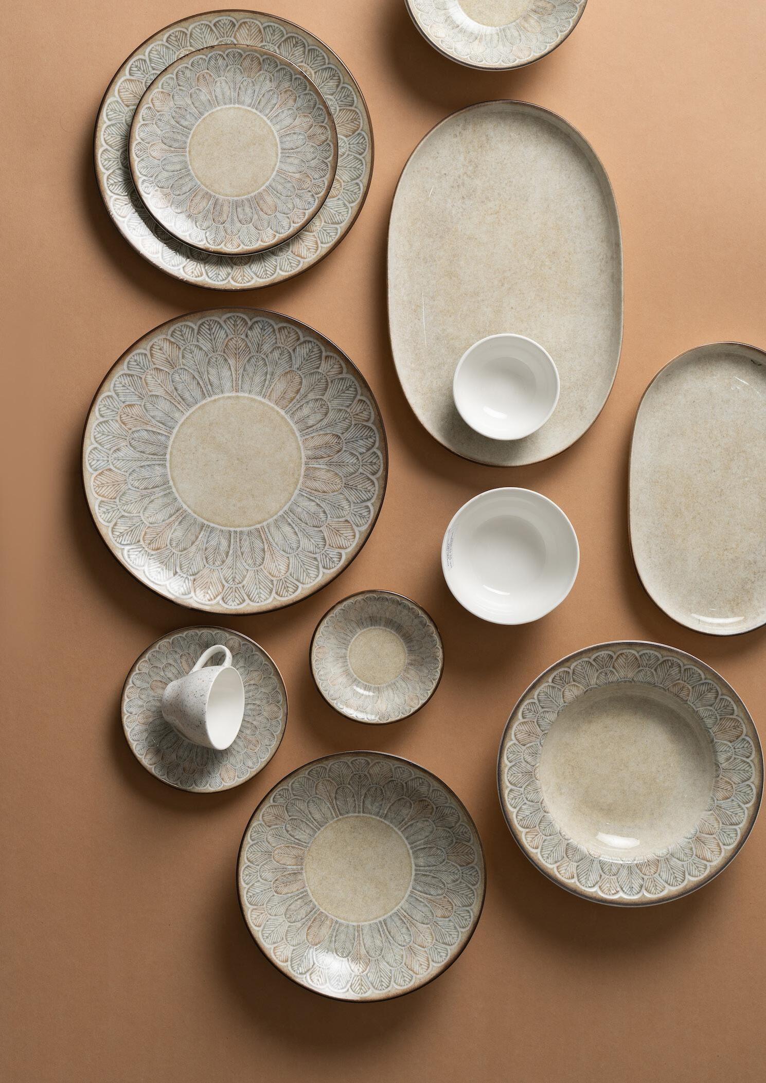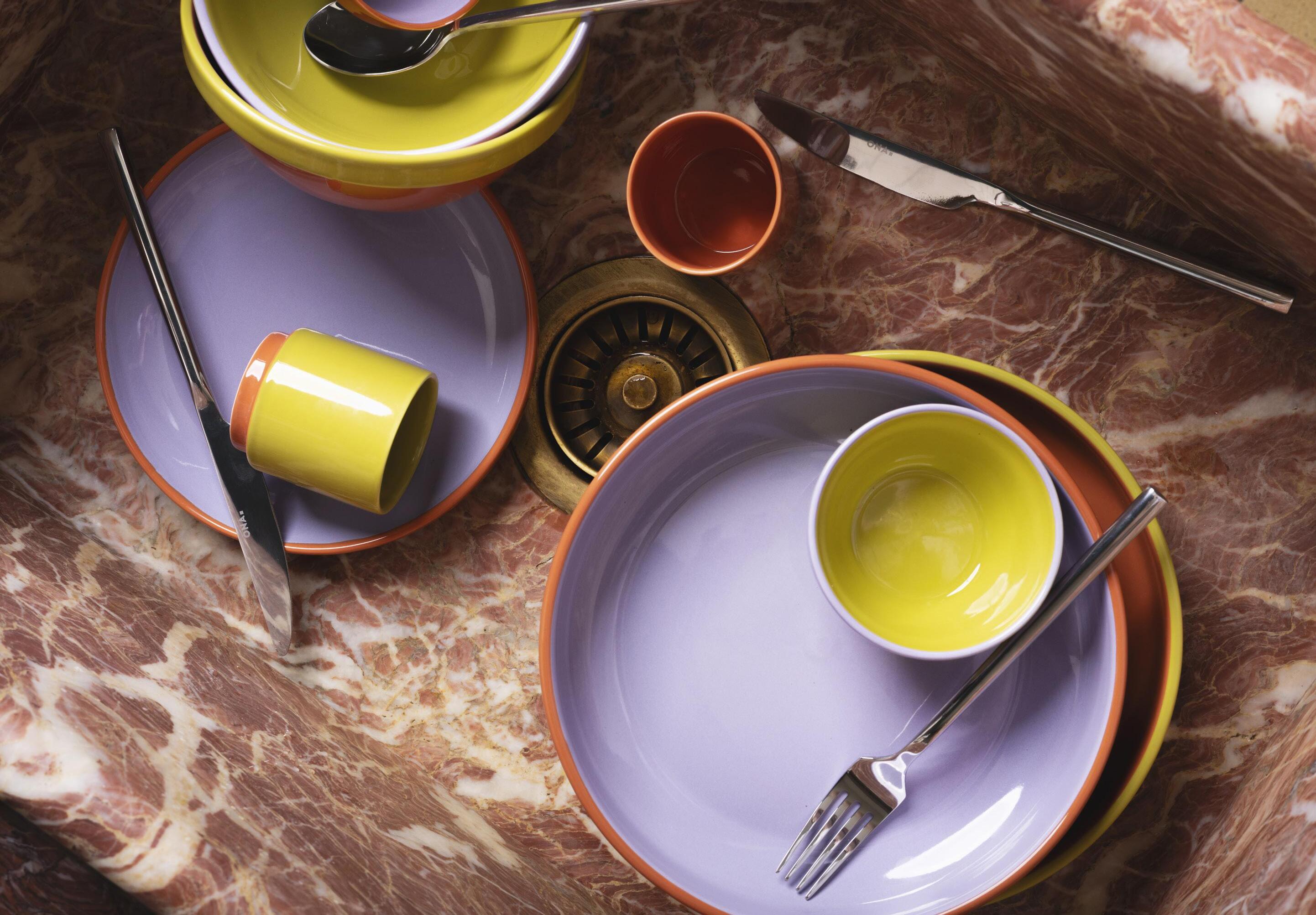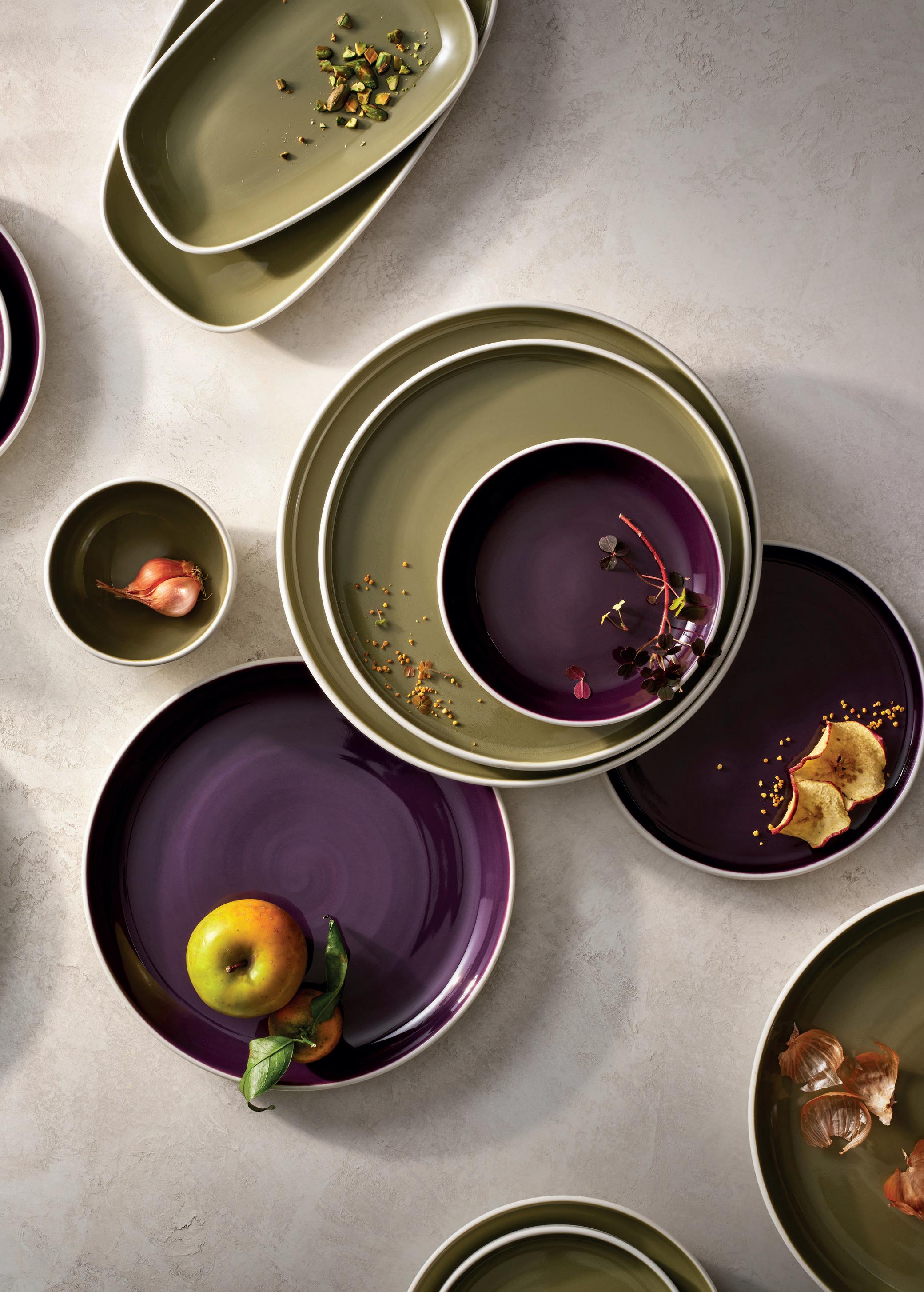 tableware. Mosaic has been really popular with our clients, and in particular the Pizza Plate, which packs a real punch on the table. The deep plate is fantastic for pasta, dishes with sauces and also green salads. Calif works really well as a starter plate or even to present a