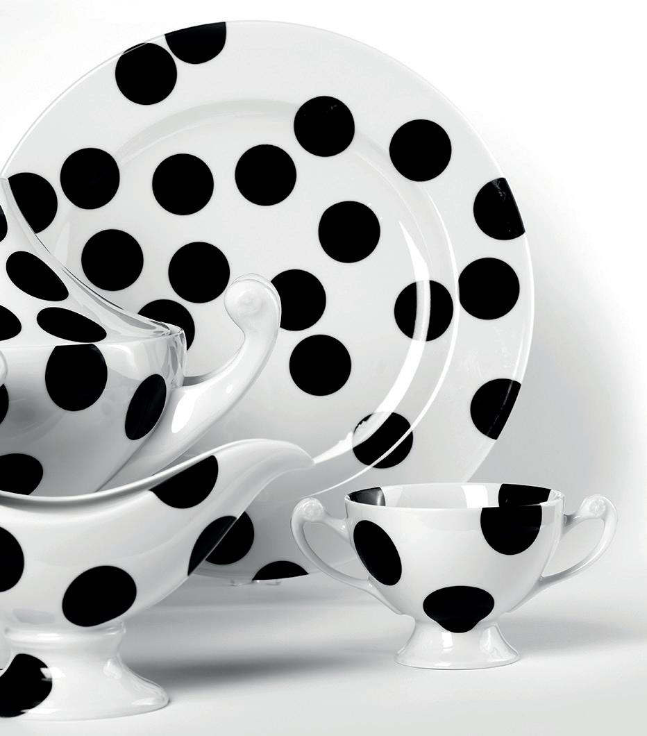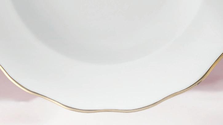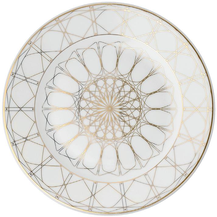 The Jenny Solaris collection is a new, luminous version of the Jenny cut by Ćmielów. At the heart of the Solaris decoration is a hypnotic geometric motif that creates a chain of golden lines, adding extraordinary dynamics to each piece. The pieces are finished in hand painted carat gold. Available in two colourways – pure white and deep gold – they can be mixed and matched to curate a bespoke table arrangement. www.porcelana.com.pl