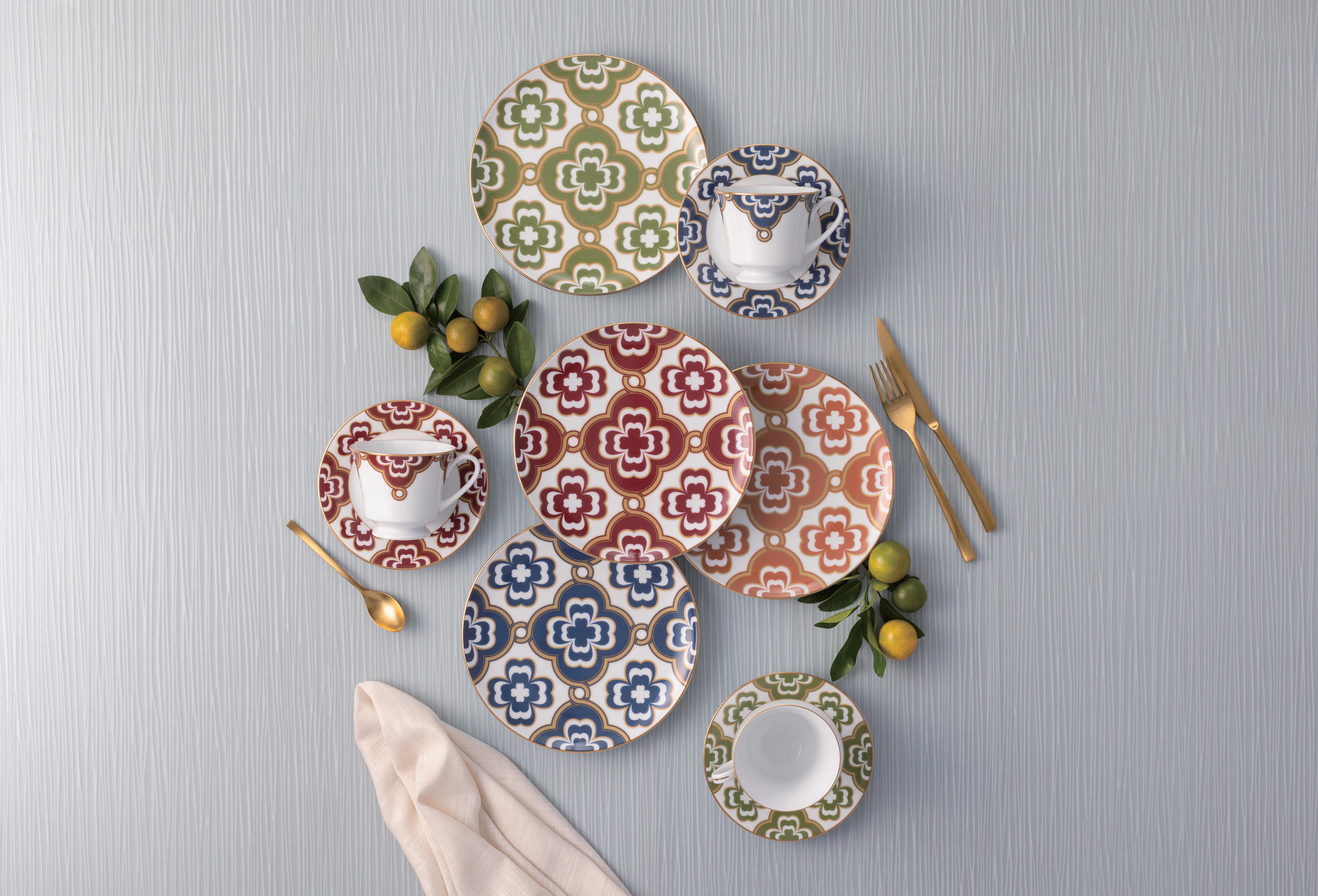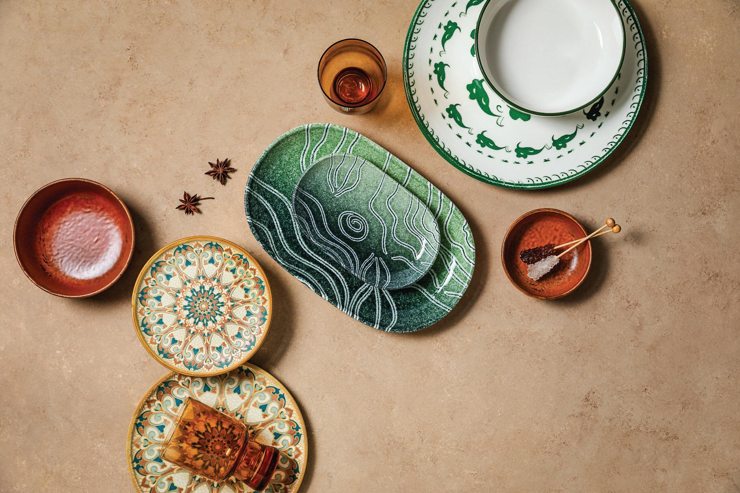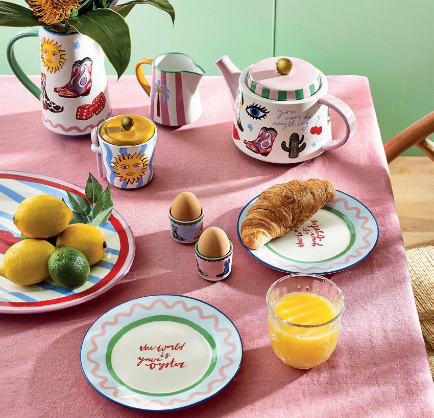 up Summer’ will evoke the essence of holidaying in France, Spain and the Eastern Med, using colourful items from Bonna like those from the Calif, Viento and Luca Mosaic. Again, just using key pieces from these ranges is enough to bring a wow factor to the table, even if mixed with mainly white or cream