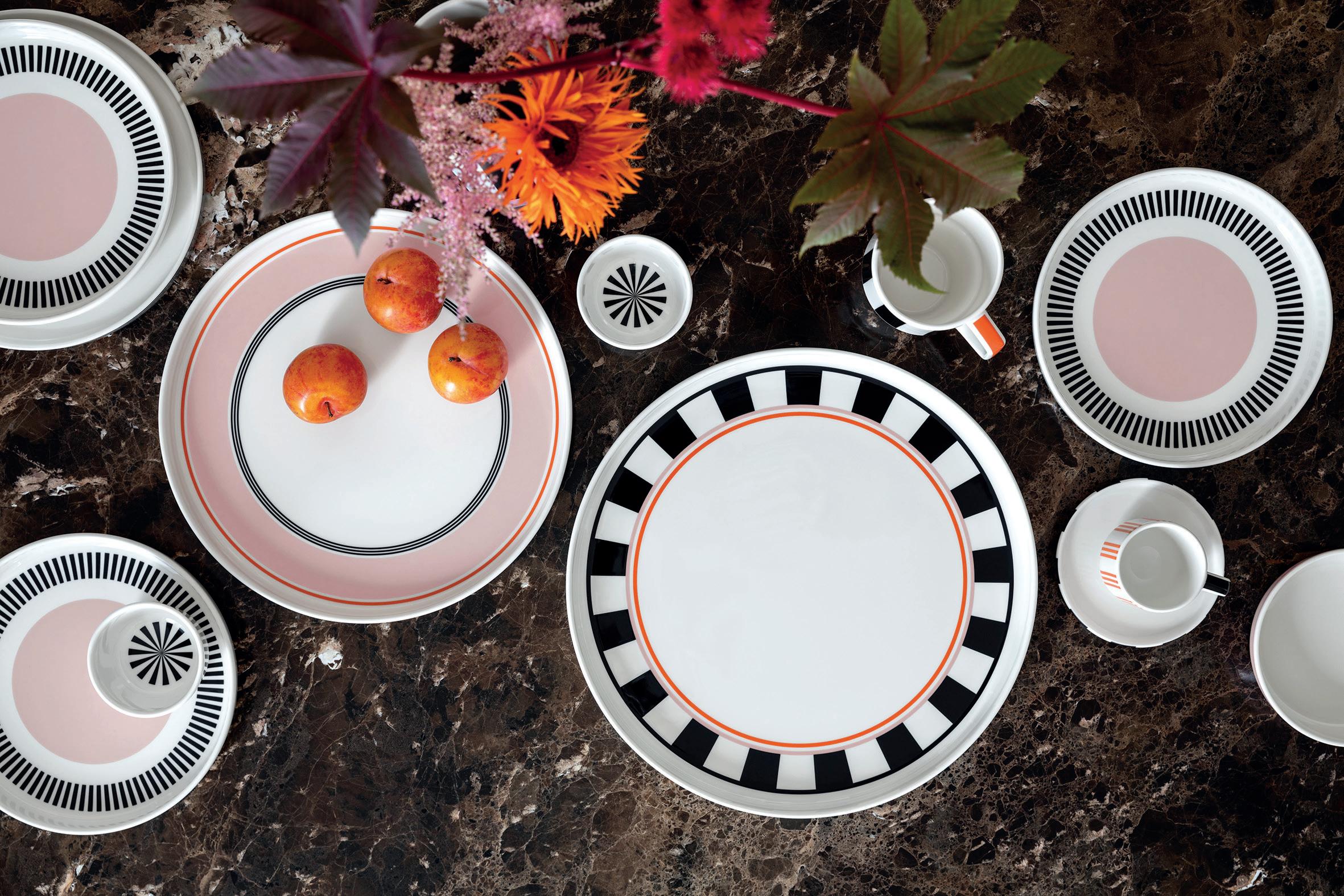 Villeroy & Boch has taken inspiration from its treasure trove of in-house patterns, creating a dinnerware collection based on the popular Memphis décor from the La Boule series. Interestingly, this is the first time Villeroy & Boch has made a dinnerware collection from a La Boule pattern. Memphis (originally inspired by the legendary 1980s Memphis design movement) has been developed into a 14-piece collection – think geometric patterns paired with a vibrant colour palette. The plates from the premium porcelain tableware collection – made in Germany, of course –boast raised edges which provides a contrast with the extravagant shape of the bowls. There are also two serving plates, and a small and large vase.