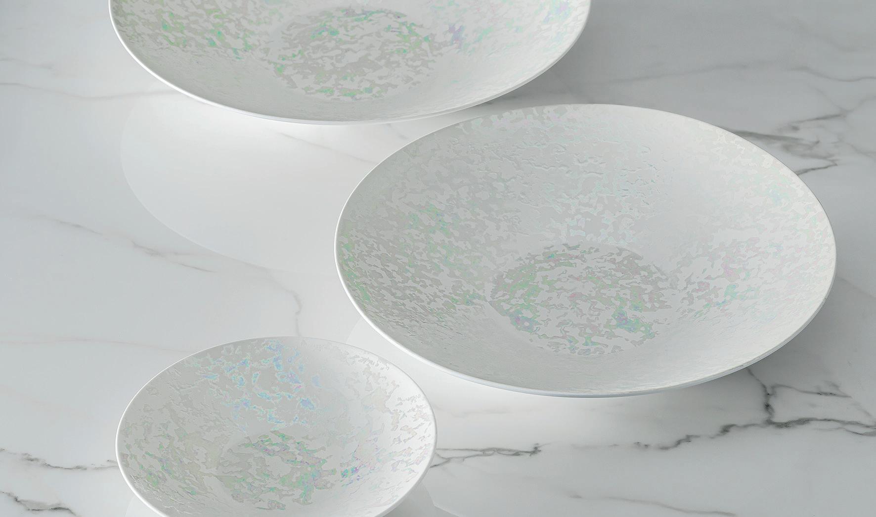 The collection’s décor features intricate designs infused with brilliant grains, creating a shimmering effect reminiscent of flower petals. This attention to detail not only enhances the visual appeal of the plates but also draws focus to the food presented on them. The colourways are designed to complement a variety of culinary creations, allowing them to shine on the plate. The collection’s unique selling points lie in its meticulous craftsmanship and thoughtful design. The plates are shaped to draw all attention to the food, ensuring culinary creations are showcased at their best. Additionally, the shimmering effect of the brilliant grains adds a touch of sophistication, making the Lustre collection a standout choice for those seeking both aesthetic appeal and culinary excellence in high-quality porcelain. Moreover, the collection is highly regarded for its lightweight and easy manageability, catering to both practicality and elegance in dining experiences. Is the collection available in all global sales territories?