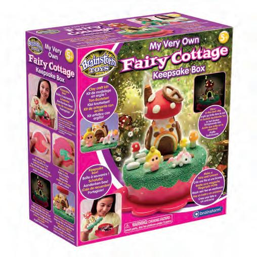 My Very Own Fairy Cottage Keepsake Box is an adorable craft kit that doubles as a beautiful keepsake box. Children can create a magical toadstool home for their fairy and unicorn figures using three types of easy-to-use airdrying clay including bubble and glow clay. The set includes moulds to help create shapes and a step-by-step guide. Children will love creating the scene on the lid of the cute box.