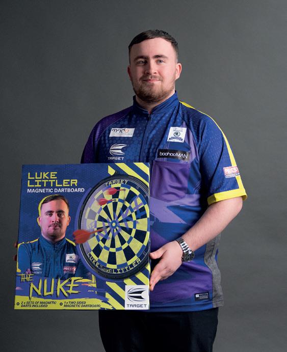 The hero line is the Luke Littler Magnetic Dartboard Set, which includes a double-sided magnetic dartboard, with four sets of magnetic darts, hanging hook and throw line.