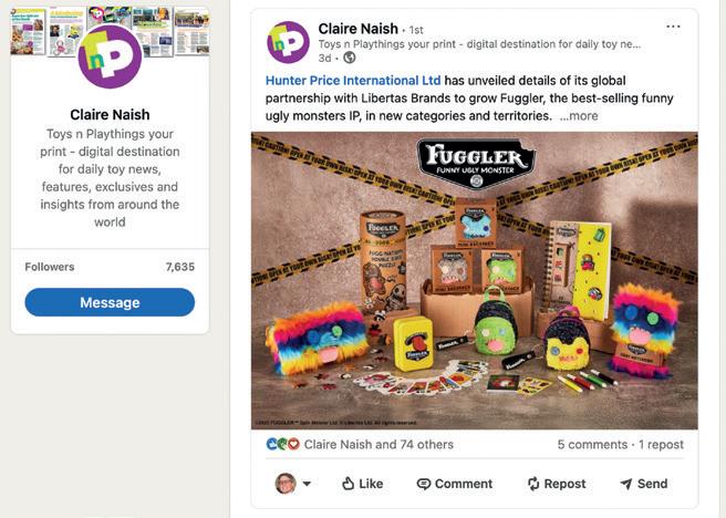 issue. With both a December issue and bumper January 2026 issue headed for the printers before the Christmas break, our deadlines are a little earlier in the month than usual. To be part of the December issue, please get in touch with myself at rhys@lemapublishing.co.uk before mid-November. And to get ahead of the crowd, contact Claire Naish at clairenaish@lemapublishing. co.uk, to learn more about our editorial and commercial opportunities for the January issue, with full previews and show guides for London Toy Fair, Nuremberg Toy Fair, Spring Fair and New York Toy Fair. We’re going to be rather busy!
