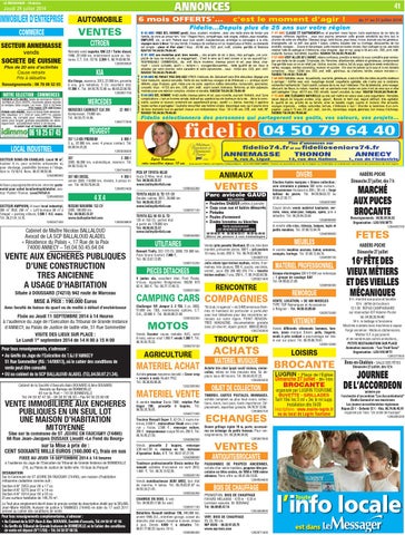 Fixée au Jeudi 11 SEPTEMBRE 2014 à 14 Heures à l’audience du Juge de l’Exécution du Tribunal de Grande Instance d’ANNECY, au Palais de Justice de ladite ville, 51 Rue Sommeiller VISITE DES LIEUX SUR PLACE : Le Lundi 1er septembre 2014 de 14 H 00 à 15 H 00 Pour tous renseignements, s’adresser : • Au Greffe du Juge de l’Exécution du T.G.I D’ANNECY 51 Rue Sommeiller (RG : 14/00013), où le cahier des conditions de vente peut être consulté • OU au cabinet de la SCP BALLALOUD ALADEL (TEL.04.50.97.21.34). Cabinet de la Société d’Avocats Alain BOUVARD & Alex BOUVARD Avocats au Barreau de BONNEVILLE 40 rue du Pont – 74130 BONNEVILLE Tél. 04 50 97 47 56 - 04 50 97 06 03 – Fax 04 50 25 60 08