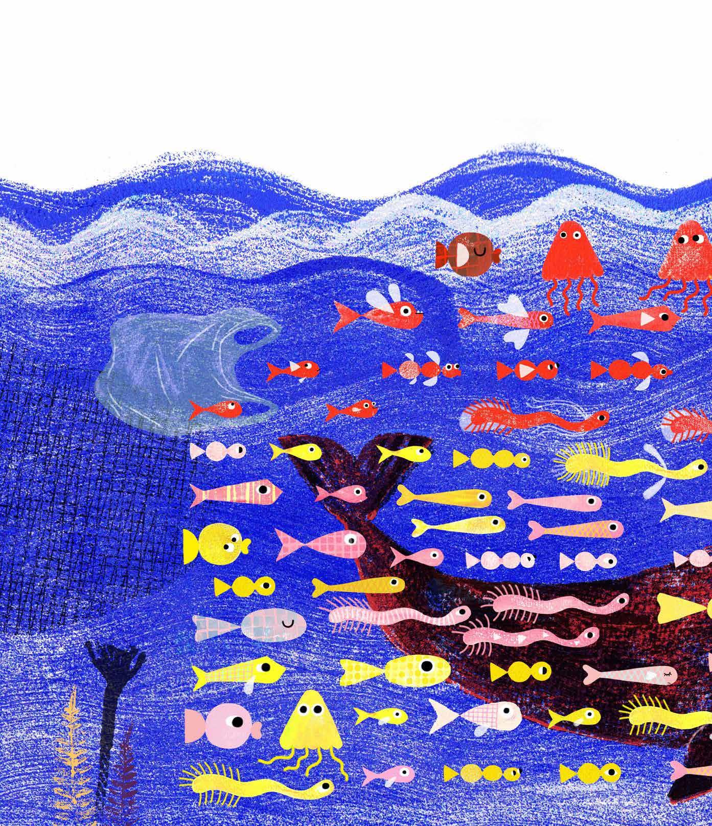 JURY REPORT The whale swims contentedly in the sea. But the litter in the water is increasing to such an extent that he looks for a new whale home. He moves to the city, where he soon realises that he is trapped between the tower blocks and is far too big for the traffic. After these initial adjustment difficulties, he finally settles down on the beach, because the water is not far away, he has space and the children start to play with him. The conclusion says: ‘Home can be anywhere, because my home is where I am.’