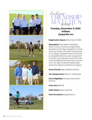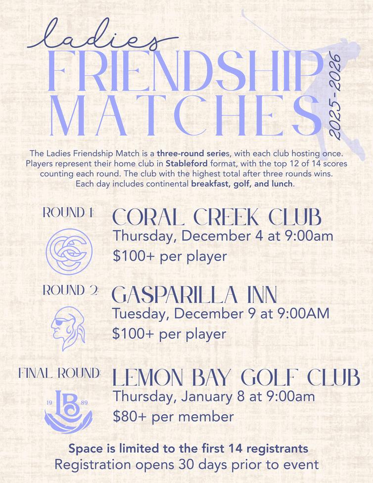 We’re excited to share the brand-new Lemon Bay Golf Events Guide, featuring all of this season’s tournaments, leagues, and special events – all in one convenient place. The booklet also includes updated 2025–2026 rates and a helpful guide for everything golf-related at the club.