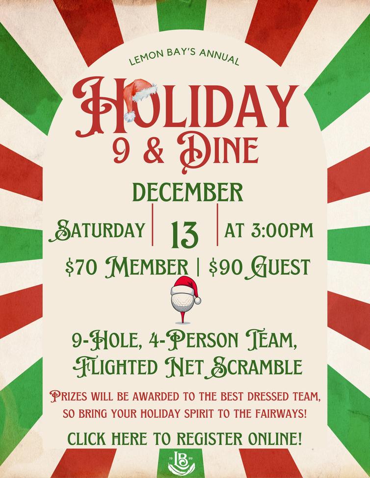 13th 3:00 pm 9 & Dine Holiday Scramble & Golf Shop Sale