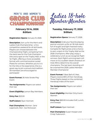 Check out page 8 for a new addition to communications: The 2025-2026 Golf Events Guide Meet the Seasonal Assistant Professional Staff on page 9