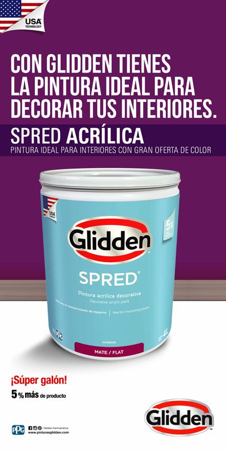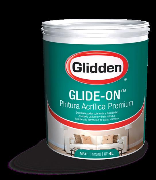 25% DESCUENTO GLIDE-ON ACRILICA SATIN. $124.00 $165.98 ANTES CUBETA $27.96 $36.62 ANTES GALÓN $7.50 $10.00 ANTES CUARTO PINTURA ACRILICA DE ALTA CALIDAD. MÁS DE 1,400 COLORES. Mejor recubrimiento. Bajo olor y secado rápido. Fácil de aplicar. Excelente lavabilidad. VÁLIDA DEL 10 DE NOVIEMBRE AL 31 DE DICIEMBRE DE 2022 O HASTA AGOTAR EXISTENCIAS | IMAGENES CON FINES ILUSTRATIVOS DISPONIBILIDAD PUEDE VARIAR POR SUCURSAL AURUM PROFESIONAL. 91.61 122.14 CUBETA $20.35 $27.13 ANTES GALÓN $5.18 $6.90 ANTES CUARTO PINTURA ACRILICA LIBRE DE AMONIACO. Para exterior / interior. Magnifica resistencia al exterior. Bajo olor y salpique. Resistente a formación de algas y hongos. Acabado mate que ayuda a disimular imperfecciones.
