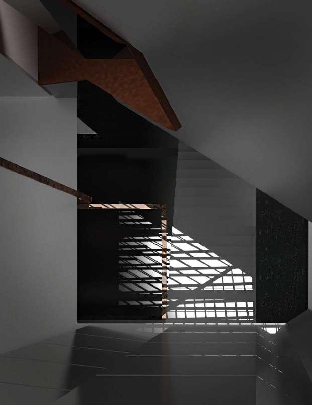 e preliminary stage of the project is a three-dimensional rectangualar mesh. It is distorted. Based of the distance of stencil points, the layered grid breaks out of its boundaries. It elevates into an internal vertical circulation giving a slope shape to the net. As a result, the form, which is contoured by tying surfaces to the tubes of the mesh, is balanced over the ground.