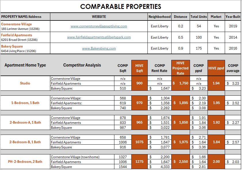 In addition, The Hive will offer access to outsourced amenities through included memberships at Pickleball Warehouse and Steel City Squash, enhancing recreational and wellness opportunities for residents.