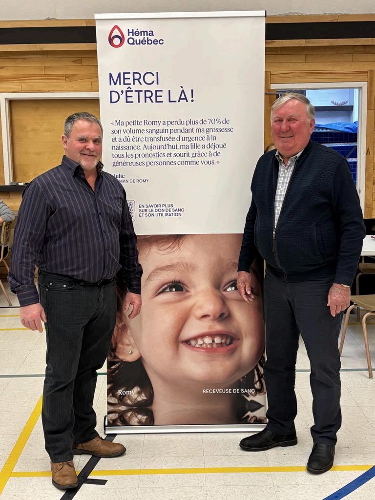 En terminant, je tiens à remercier toutes les personnes qui se sont impliquées à la collecte de sang Héma-Québec du 27 février dernier Organisée par notre service des loisirs, l’événement a atteint son objectif avec 71 donneurs À tous les bénévoles et donneurs, merci de votre don de soi et don de sang, contribuant à sauver des vies.