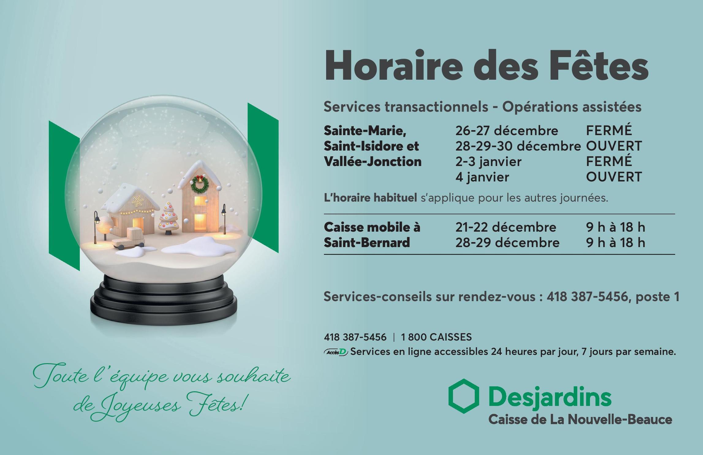 Je profite également de l’occasion, en mon nom et celui des membres du conseil et du personnel de la Municipalité, pour vous souhaiter un joyeux temps des Fêtes Que l’année 2023 vous apporte paix, santé et bonheur