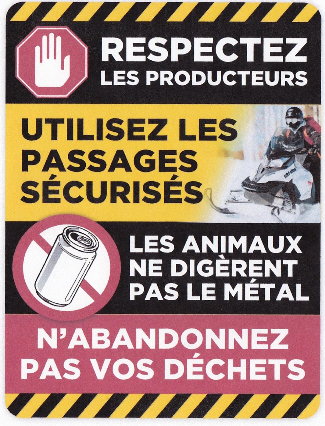 L’hiver approche et bientôt, vous profiterez des sentiers aménagés dans la municipalité. Que vous soyez à pied, en raquette, en ski, en motoneige ou en véhicule tout terrain, respectez les consignes , Quelques pancartes sont installées près des sentiers de motoneige. Rappelez vous que les ententes renouvelables signées avec les propriétaires des terrains permettent de circuler dans les sentiers seulement Ces sentiers sont sécuritaires Respectez les lieux, évitez de jeter vos déchets près des sentiers.