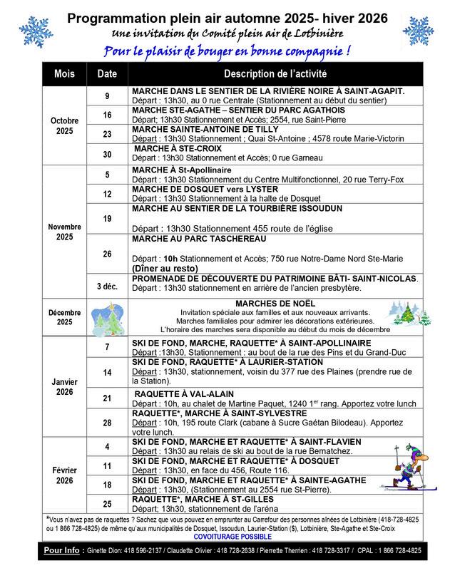 Pour nous joindre : cal saintnarcisse26@gmail com ou une des membres du comité par Facebook/Messenger (Carole-Ann Fortin, Patricia Ferland, Julie Chabot Allard, Véronique Pouliot ou Josée Dion)