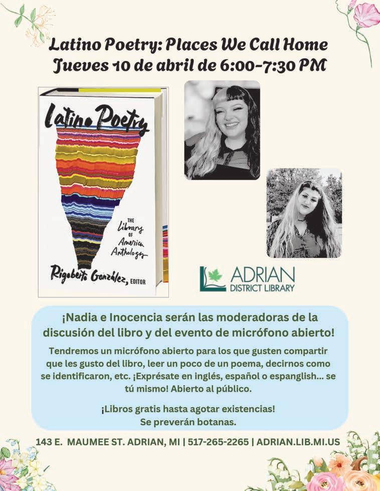 Adrian District Library, all day (library hours are 9:30 a.m. to 8 p.m.)