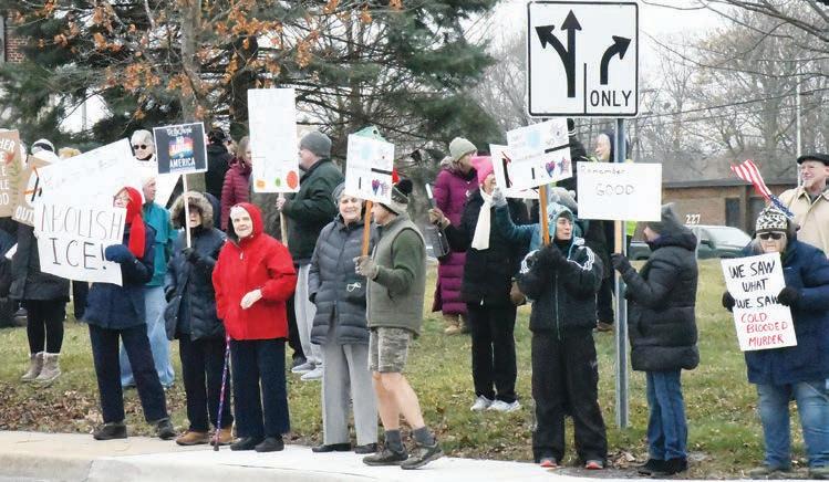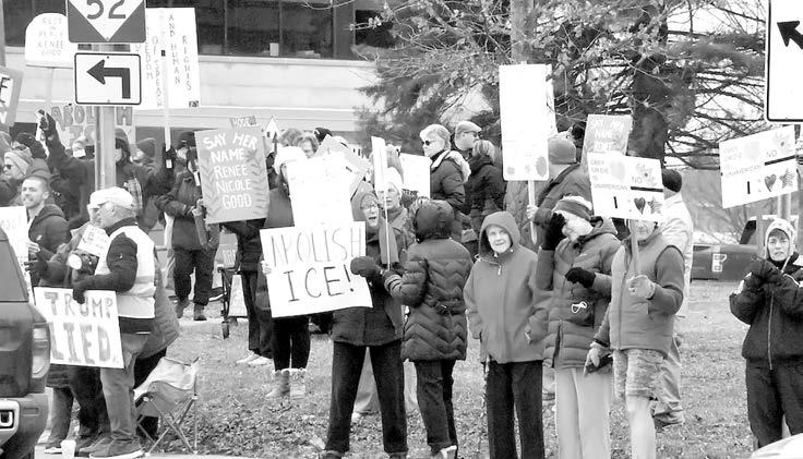 ADRIAN — Unas 150 personas se reunieron frente al antiguo Palacio de Justicia del Condado de Lenawee el 10 de enero después de un tiroteo en Minneapolis que dejó una mujer muerta.