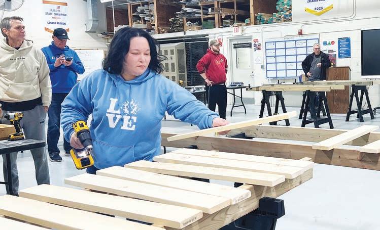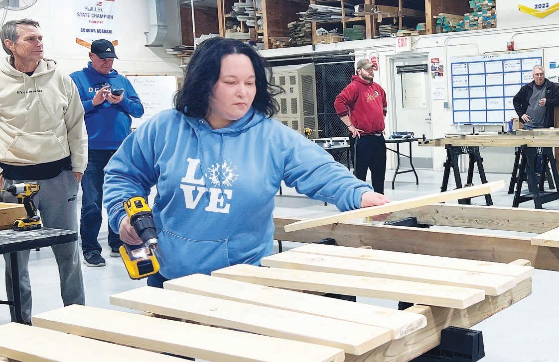 Christina Villalobos participa en un evento para construir camas para niños necesitados. El evento se llevó a cabo en el Centro Tecnológico LISD, donde voluntarios construyeron 50 camas para niños del Condado de Lenawee.