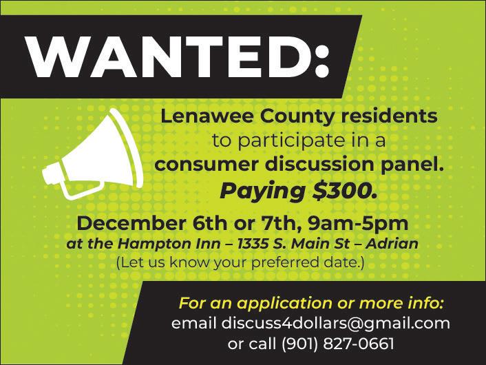 110 S. Madison St., Adrian 517-902-6223 or lenaweenaacp@comcast.net