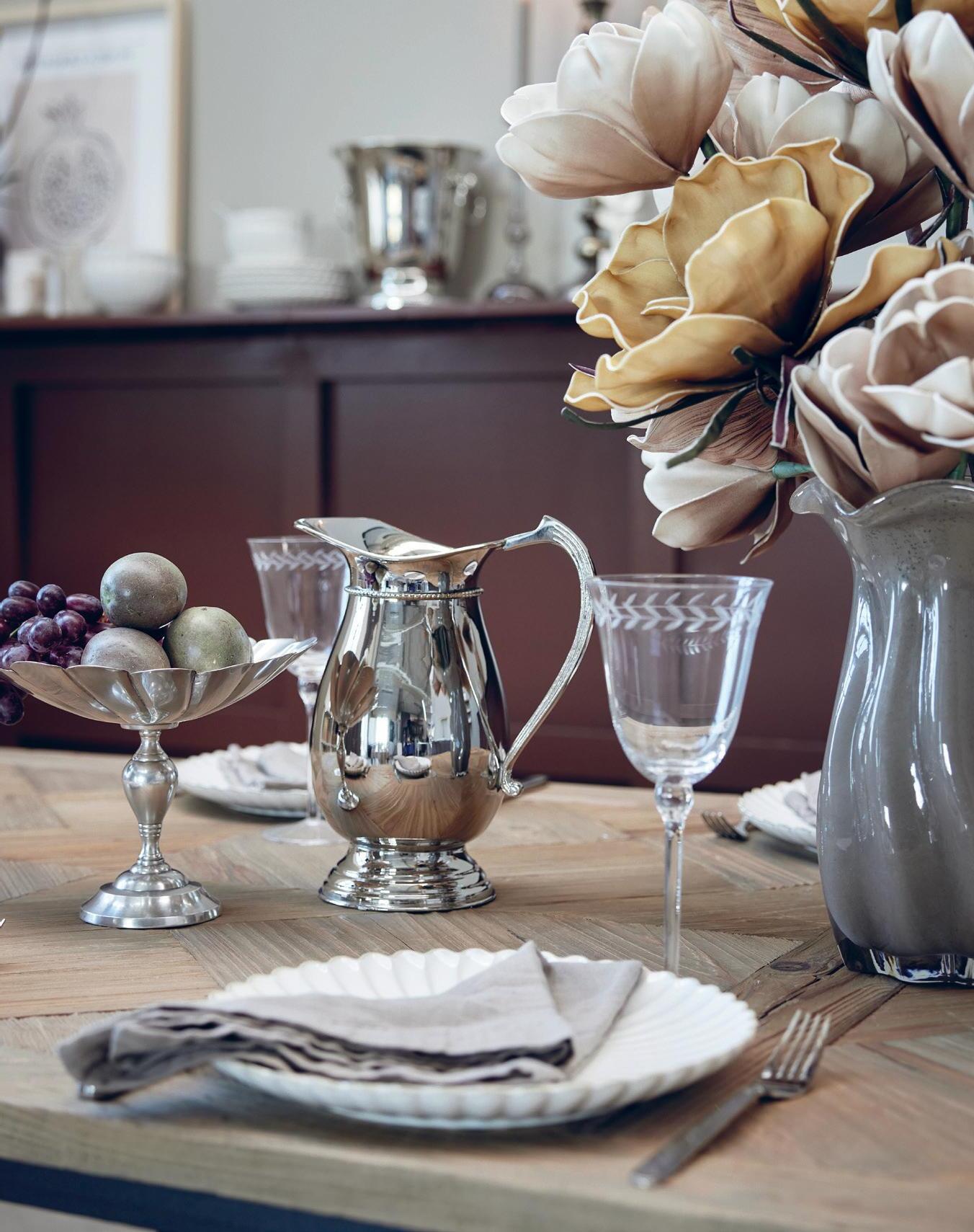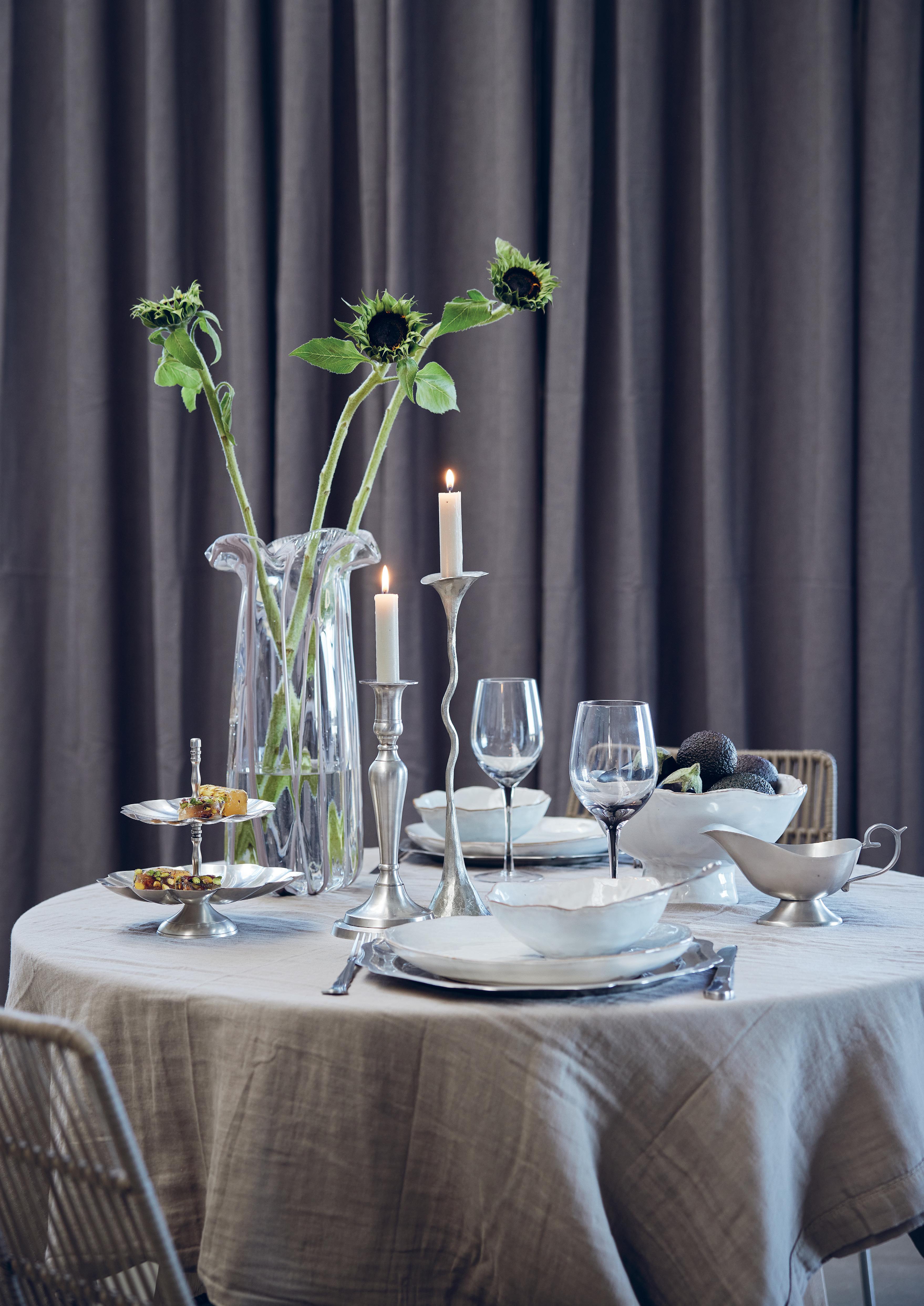 The mood is warm, tactile, and sophisticated – with soft textures, sculptural forms, and a muted, earthy palette that evokes calm and quiet luxury. From elegantly set dinner tables in silver and glass to inviting bedrooms wrapped in quilted comfort, every detail invites you to slow down and enjoy life’s everyday rituals.