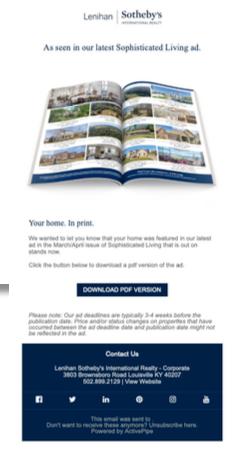 Email newsletters can be sent out monthly with content provided by the Marketing department, market or neighborhood updates, and featured properties