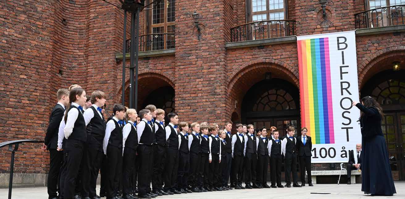 Adolf Fredriks Gosskör underhöll med bland annat ”Ut i vår hage”
