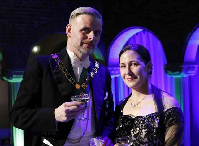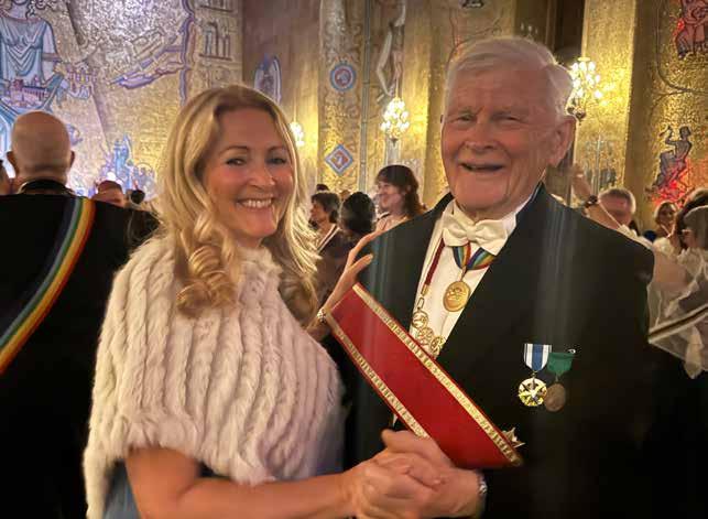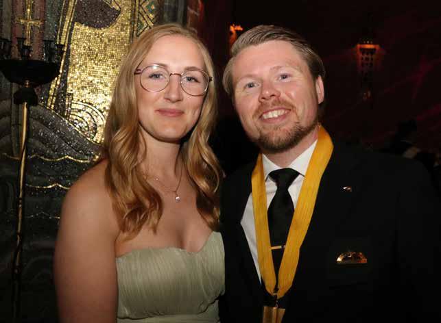 Fr. v Jennifer McShane & Johan Lööf vid banketten i Stockholms stadshus.