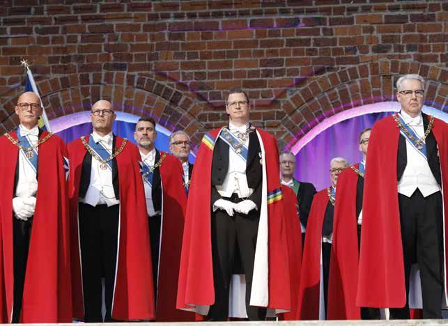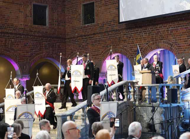 med Ruby & Lars Ullmans stiftelse har gjort detta möjligt. Vill passa på att berätta att varje grundloge har tilldelats de standar som bars ner vid den högtidliga processionen i den klassiska trappan i Blå hallen. Dessa standar får en fin plats i respektive hemmaloge framöver. All den fina dekoration samt standaren har med varsam hand arbetats fram av bröderna Sören Nordén och Eric Edman. Rikstingsgeneralen Björn Torstenius har haft
