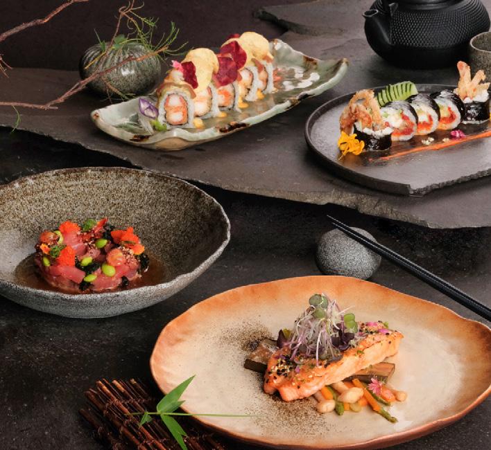 At the omakase bar and patio, diners can savour culinary delights such as the tom yam shiromi with white fish, marinated shiitake, baby starfruit, tom yum vinaigrette, lime oil, coriander and green onion, combining a Japanese dish with Thai flavours. More signature dishes can be found in the Peruvian ceviche, salmon truffle hosomaki and foie gras uramaki. Complete the experience with the selection of Japanese sake, as well as creative and classic cocktails.