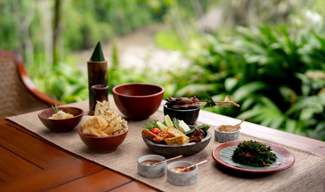 Not only does Dulang Restaurant serve traditional Balinese cuisine it also recreates the cultural experience. A dining journey at Dulang start s with a welcome drink of Loloh Cemcem, a traditional beverage made from indigenous herbs from an ancient family recipe, served by one of the hosts. A Balinese handwashing ritual called mewacik is performed at the table before the dining starts.