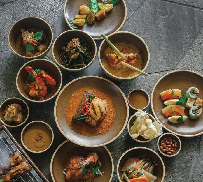 Opening the actual meal is a wide array of sambals served with home-cooked crackers. The main course is served on a dulang, a traditional royal plate , from which the restaurant gets its name Enchanting music is played on traditional bamboo rindik, a charming companion to the Balinese dance performance. The cherry on top of the experience is the authentic Balinese desserts, such as dadar gulung, a pandan crepe roll filled with palm sugar and grated coconut, served on the side of Kopi Luwak, or civet coffee.