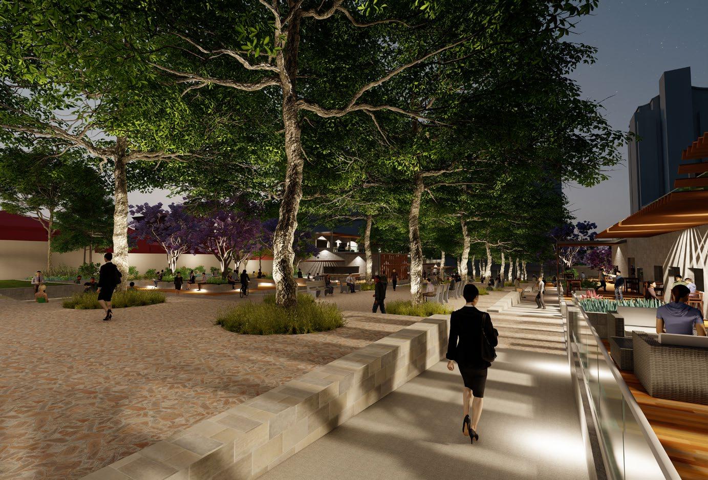 The commercial area park features, multiple lakes, nature play elements and a slide down Broga Hill, helping lower the ambient temperature and provide interesting play elements for the residents while paying homage to the site’s natural terrain.