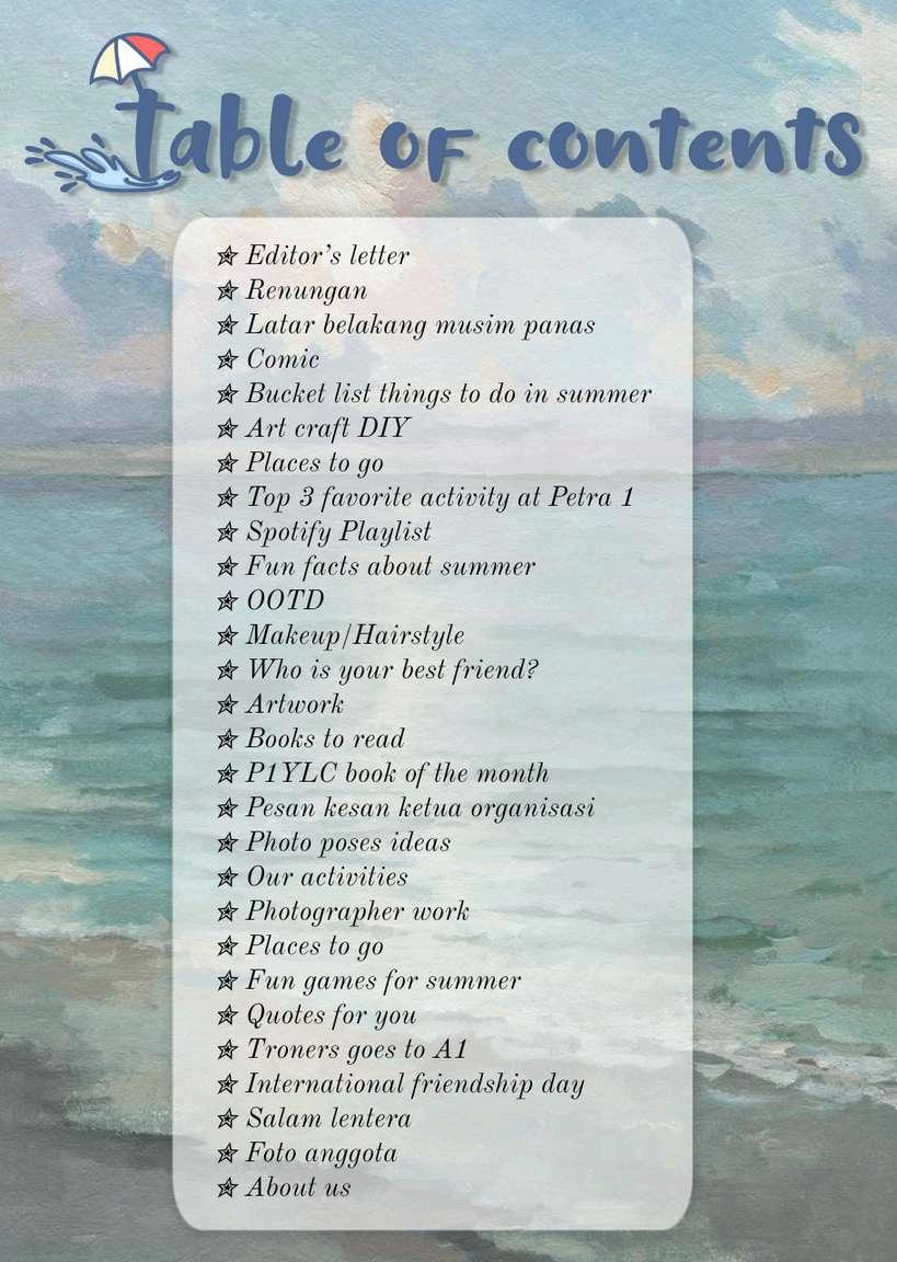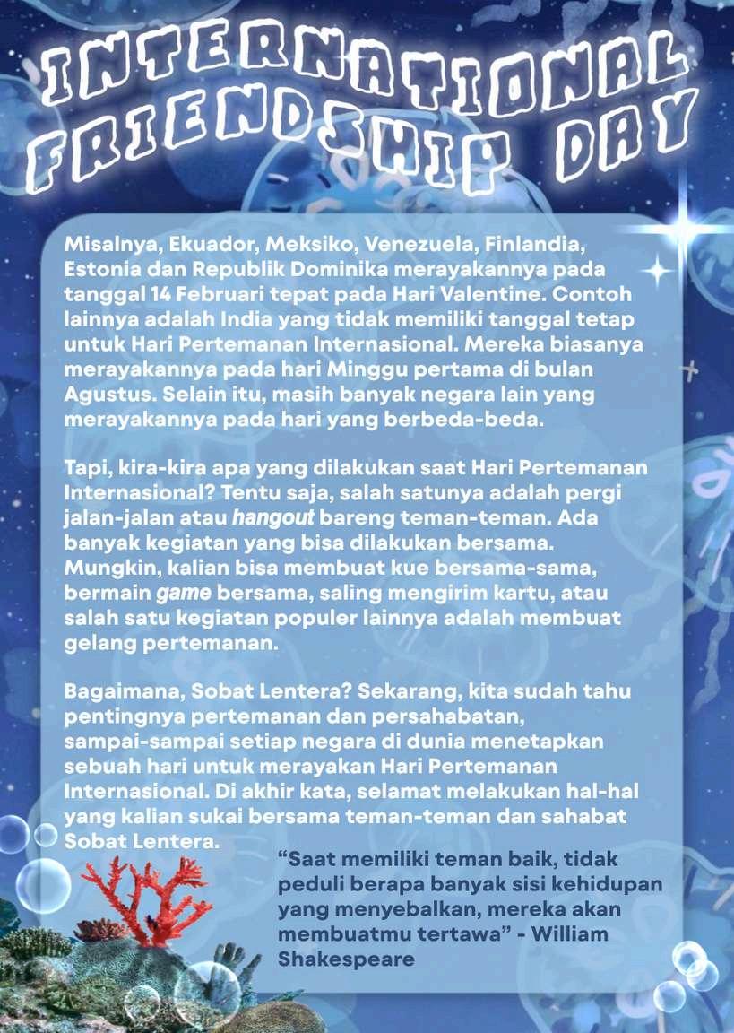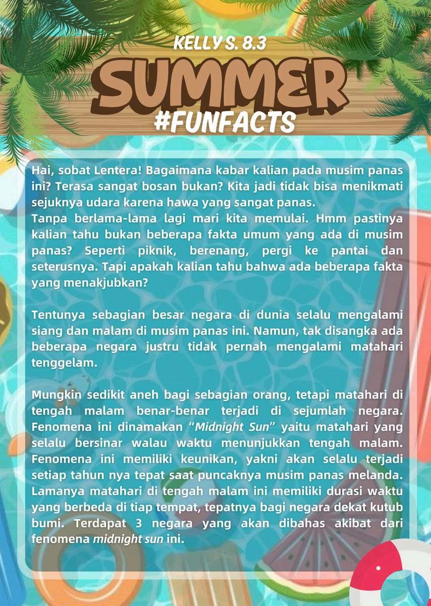 Hai hai hai sobat Lentera!! Suasana musim panas sudah terasa ya? Nah, di kesempatan ini Lentera akan menyajikan majalah Vol. 90 "Taste of Summer" ini, Lentera telah menyelesaikan majalah bertema musim panas yaitu "Taste of Summer". Di majalah terbaru ini, kami menyediakan inspirasi kegiatan, lagu, dan ide-ide yang bisa dilakukan saat musim panas. Inspirasi kegiatan yang kami berikan bisa dilakukan agar libur musim panas sobat Lentera terasa produktif dan menyenangkan! Tunggu apa lagi? Hilangkan rasa penasaran sobat dan langsung baca majalah terbaru Lentera Vol. 90. Selamat membaca!!