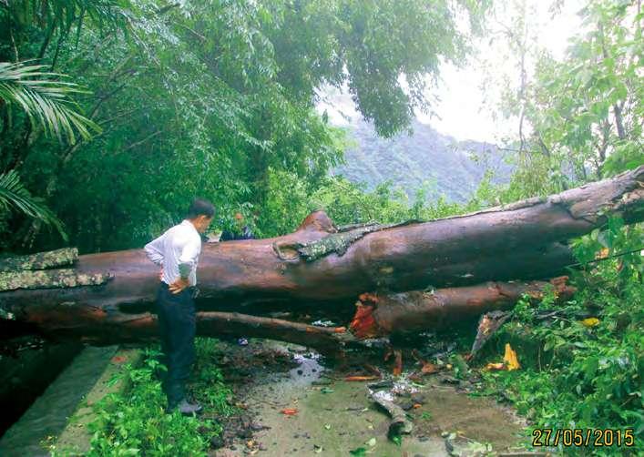 2013年的蘇力颱風帶來強風豪雨,重創中部山區時, 劉興水不斷巡邏社區災情,確保安危。
