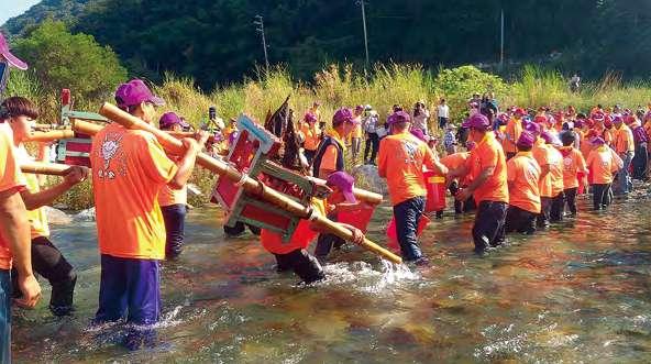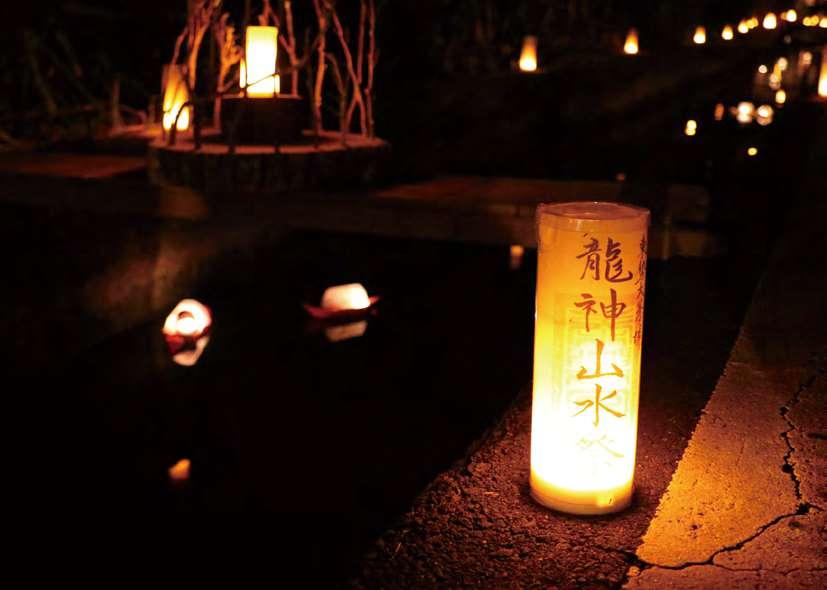 邁入第6年的龍神山水祭已成 為重要地方祭典,夜間重頭戲 「五行祈福船施放」,會在大 茅埔圳(穿龍圳)點起祈福船, 燈火搖曳,別有風味。