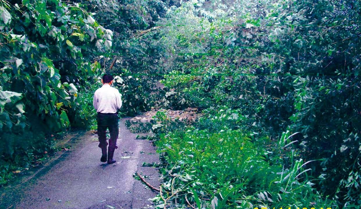任職以來,歷經八七水災、敏督利颱風、921地震,每一次都是與山、 與水搏命。當災難來臨,街巷全淹,「學校那邊,石頭有一個房子那麼大, 也沖進去。後來叫阿兵哥支援。」甚至以前村裡的東卯橋也不是在派出所 旁邊,是後來房子全都被水沖掉,民宅的地勢才跟著提高,沿著新的山線 居住。「沒辦法。」劉興水手一攤,一句話,道不盡山村生活的艱難,面 對大自然的無情,想哭也沒眼淚、想飛也沒有翅膀,所以在絕處,要自己 找出生存的路。