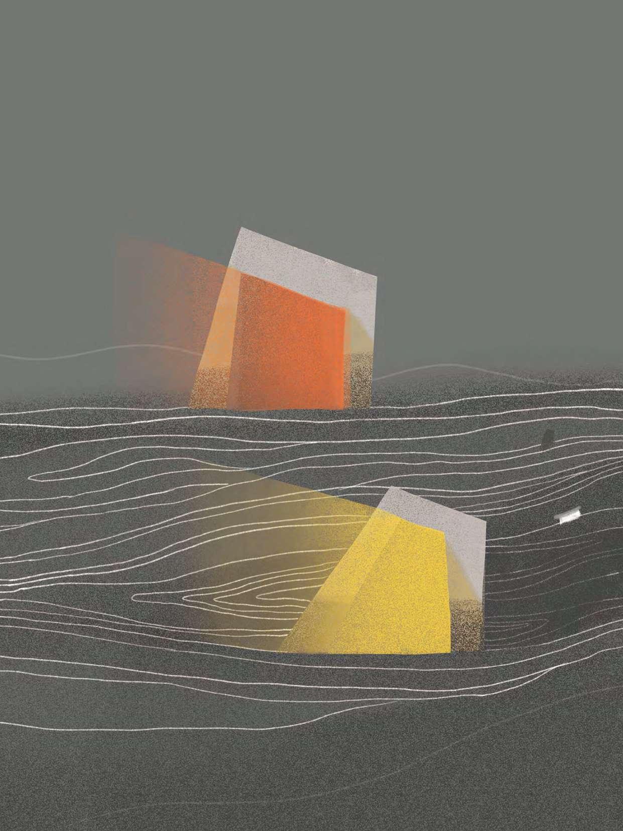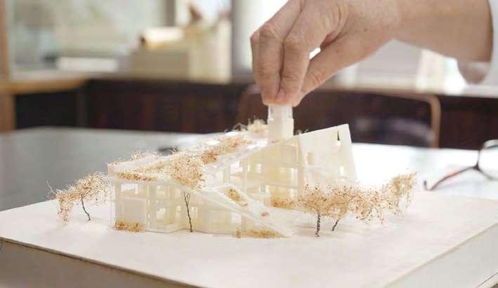 來東勢探勘的那天,他沿舊東勢高工的坡地而上,望向一片綠意,將 所有想法轉化為一份「愛的禮物」——設計圖上,圖書館外觀有如層疊的 禮物盒,「我常講禮物永遠不嫌多」他笑著說。這份禮物同時化身「知識 的燈塔」,照向山城,是給許良宇,也是給東勢客庄的祝福。