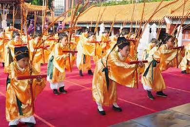 (左圖)談笑間,江俊龍主委感謝與歡迎蘇主任 再次來訪臺中體驗客家文化。(右圖)臺中各界 紀念大成至聖先師 子誕辰2575週年釋奠典 禮上,帶來古禮八佾舞。遠道而來的學者蘇費翔 見證傳統儀典的莊嚴美學。
