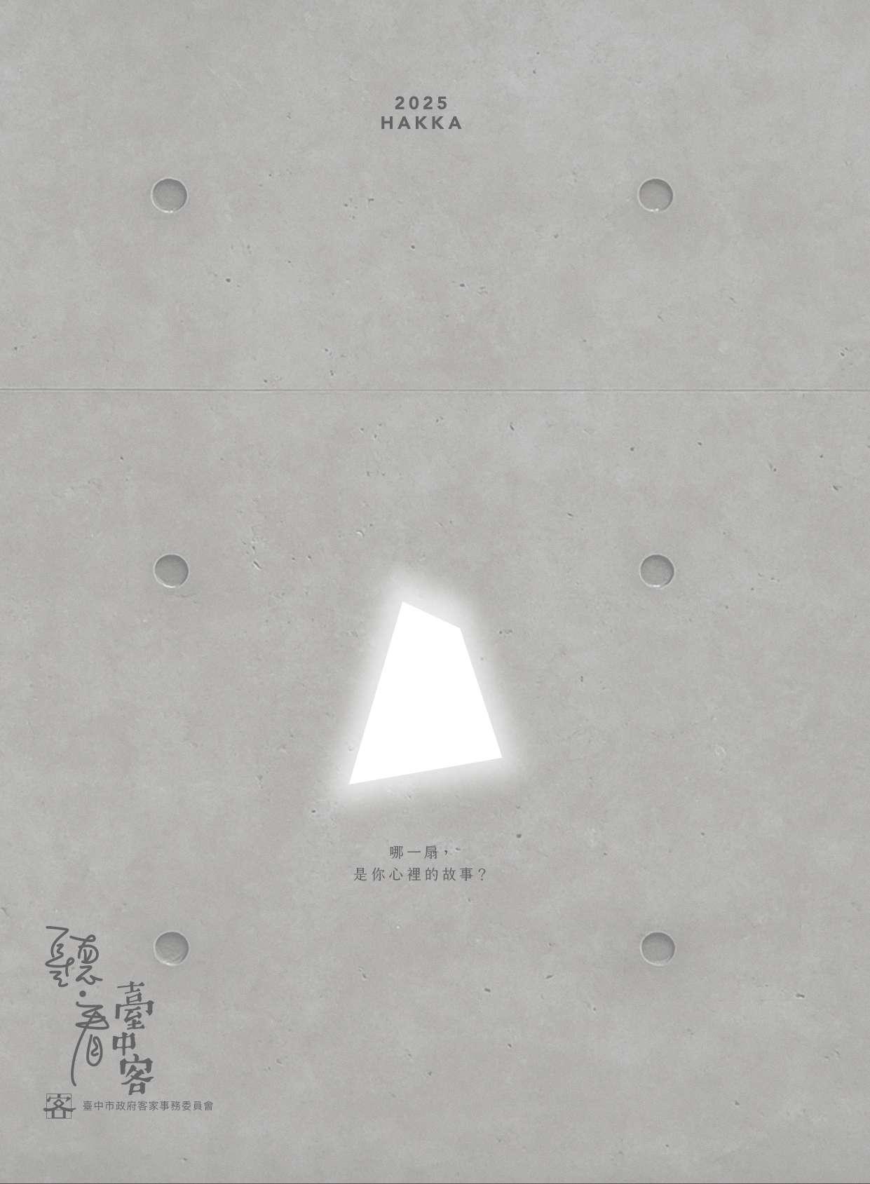 拿到這一期半年刊,你可能會覺得封面有些特別、有些熟悉——這次以清水 模為背景展開的設計,呼應綠建築的自然精神,希望在這片純粹的牆上,邀請 大家一同尋找、堆疊出心中的「臺中客家」。